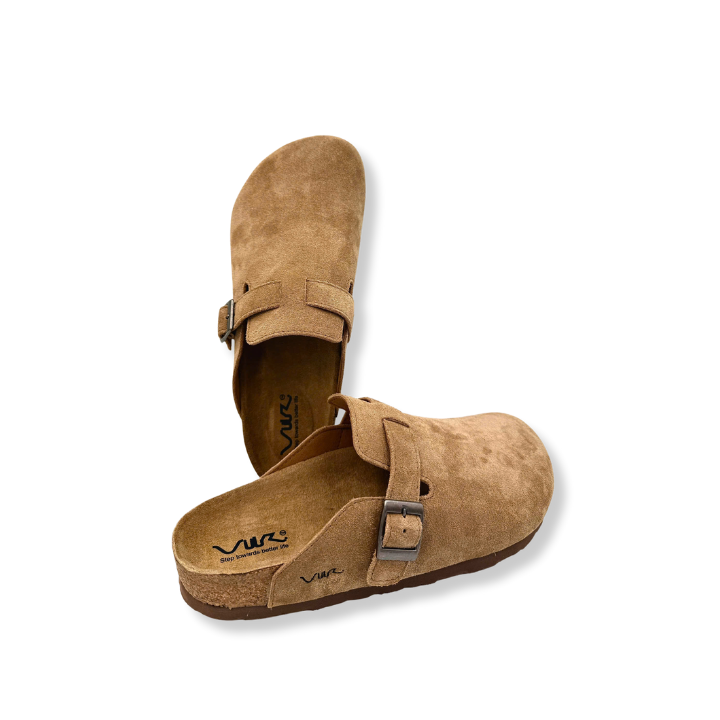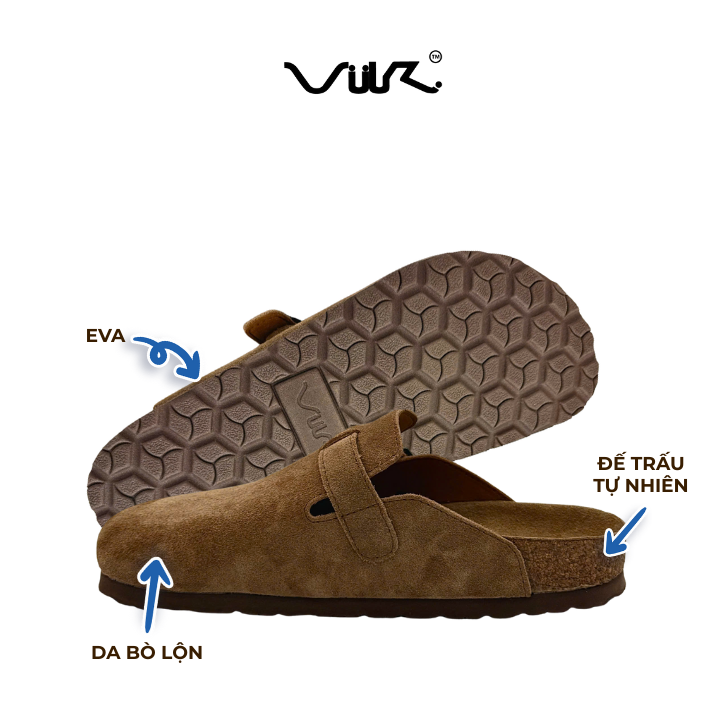 Lớp lót da lộn êm ái, kết hợp đế trấu tự nhiên định hình theo form chân sau thời gian sử dụng
