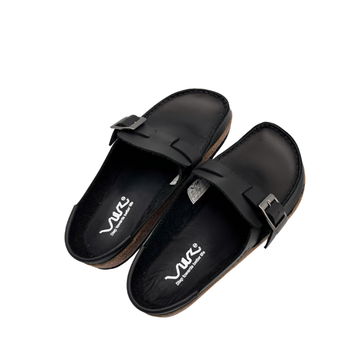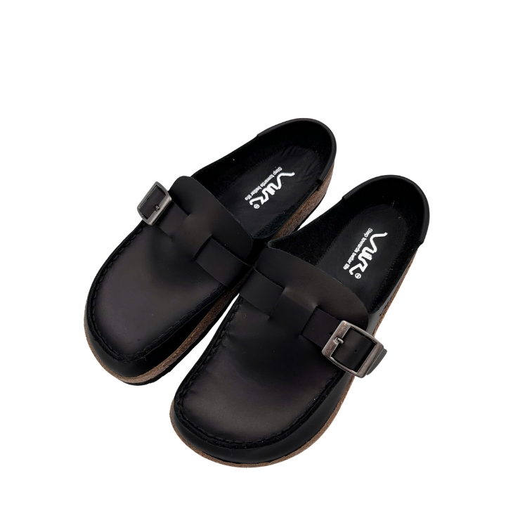 Dép Sục Đế Trấu Da Bò Thật Unisex Nam Nữ Vuki Mule – ĐenFWSDSS26A00700202
