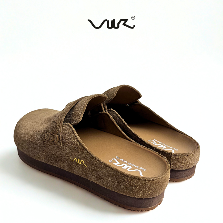Thân dép được làm từ da bò lộn cao cấp, với bề mặt mềm mại, tạo cảm giác dễ chịu ngay từ lần mang đầu tiên. Gam màu nâu tự nhiên mang đến vẻ ngoài ấm áp, dễ phối với nhiều trang phục như quần jeans, kaki hay outfit casual.